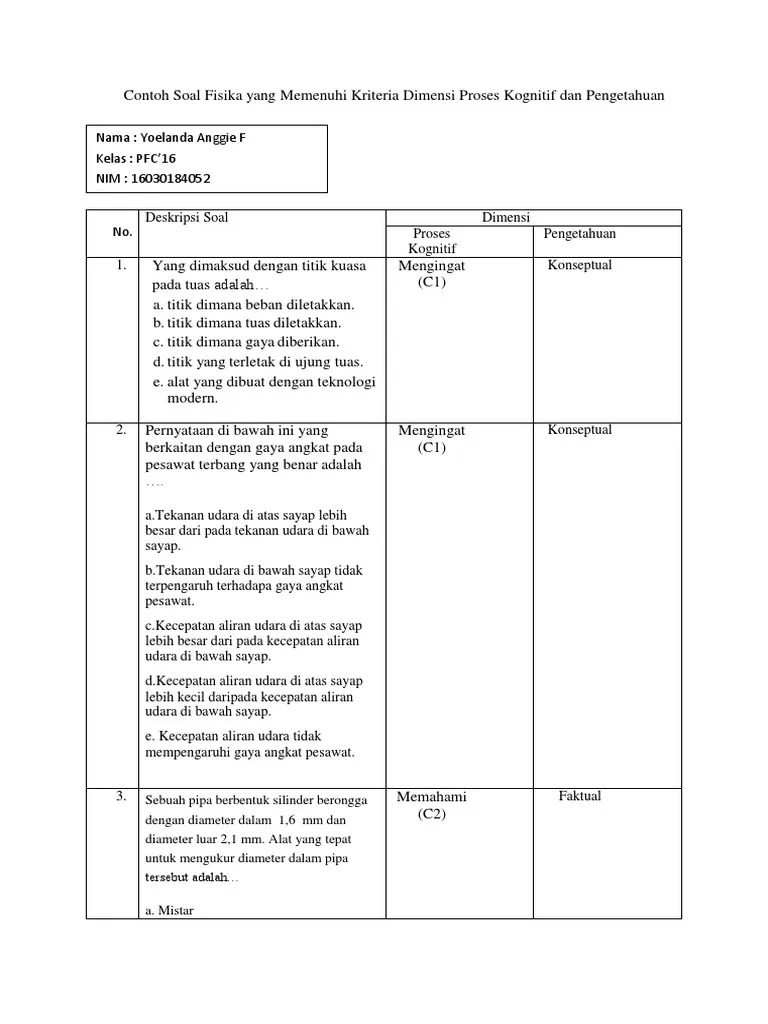 Contoh Soal C1 Sampai C6 Untuk Sd - Format Penulisan Soal Contoh